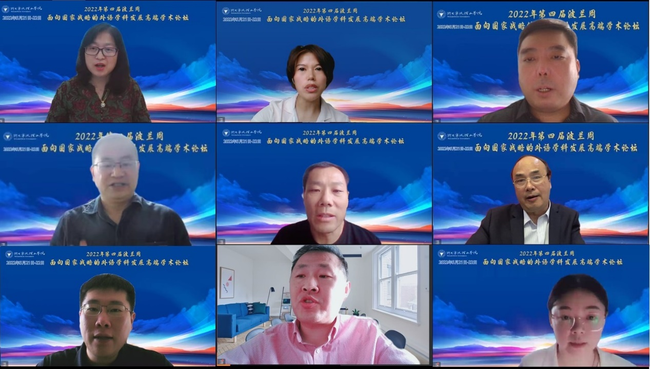 5月21日上午,浙大宁波理工公司党委书记胡征宇、国际交流合作处相关负责人、mk体育全体党政领导班子成员、系部主任和骨干教师出席了线下主会场,1700余位来自36所高校的特邀专家和参会嘉宾在4个线上联播群参加了开幕式。会议荣幸地邀请到北京外国语大学王文斌教授、中国人民大学郭英剑教授、上海交通大学杨枫教授、复旦大学蔡基刚教授和上海交通大学雷蕾教授共五位国内权威专家做大会主旨报告。此外,还有来自浙江大学、大连外国语大学、西北大学、浙江工业大学、江苏师范大学、黑龙江大学、哈尔滨工程大学、北京体育大学、浙江越秀mk体育等36所国内高校的专家学者以及师生嘉宾在线上进行学术交流。会议开幕式由mk体育经理、教育部国别和区域研究中心波兰研究中心主任胡洁教授主持。