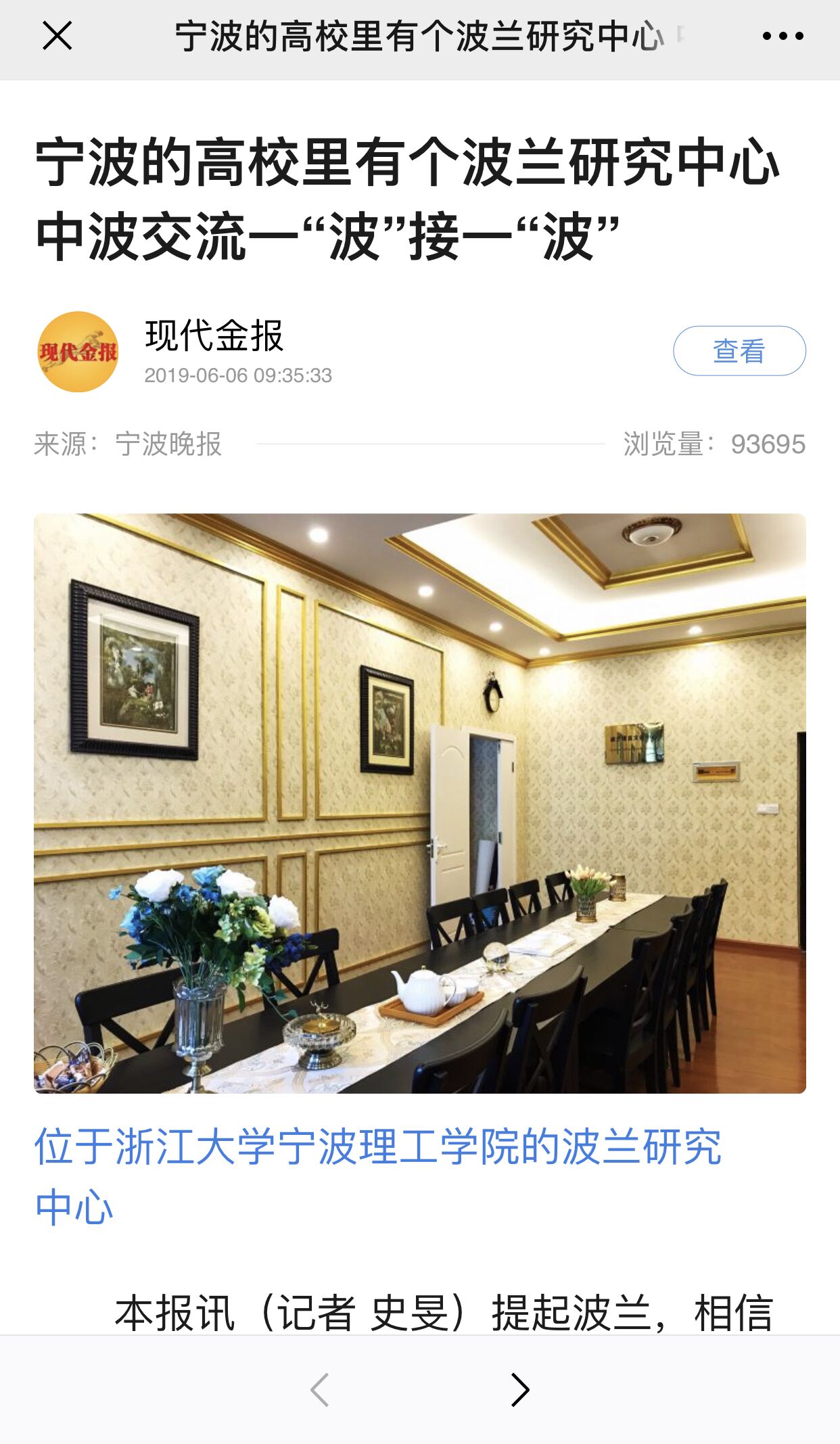2019年5月31日,宁波日报集团史旻记者到访波兰研究中心,中心副主任陈黎峰副教授接待了史旻记者并接受了她的相关采访。史记者说,今年6月8日-12日,宁波将迎来首届中国-中东欧国家博览会暨国际消费品博览会。作为“一带一路”节点城市,宁波积极参与“一带一路”建设,在经贸、人文等方面,与中东欧结下了“不解之缘”,在中东欧国家的影响力持续提升。在这样的大背景之下,报社对公司的波兰研究中心表现出了极大的兴趣,觉得有必要让全社会了解作为中国-中东欧联系纽带的波兰研究中心的工作。