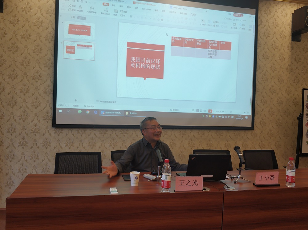 首先王小潞向与会者介绍了王之光,并对他的到来表示热烈欢迎。王之光副教授,原浙江大学翻译学研究所翻译硕士导师,全国中外语言文化比较学会副秘书长,曾任浙江省外文学会秘书长。王之光译著鸿丰,出版萨德侯爵《索多玛的120天》等译著,其中《中美关系史》得到2020年经典中国国际出版工程立项。