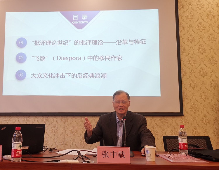 2019年10月24日下午,北京外国语大学英语公司教授、博士生导师张中载先生在浙江大学宁波理工公司波兰研究中心作题为“百年变革中的英语文学(1919-2019)”的学术讲座。本次讲座是随园讲坛第四十二期,由mk体育副经理周汶主持。