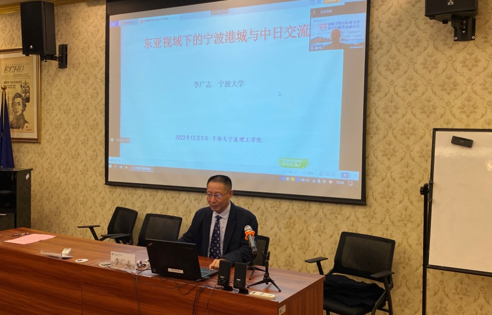 宁波大学日本研究所所长李广志副教授做了题为“东亚视域下的宁波港城与中日交流”的报告,指出宁波与日本的交往超过1200多年。自唐代以来,宁波与日本之间不断地进行人员往来,文化互通,无论是两国文献记载,还是文学作品中,都留下许多宁波城市的印记。如今,漫步在宁波城内,仍然会发现有许多看得到、摸得着的中日文化交流的历史遗迹,能够感受到宁波与日本“海上丝绸之路”的文化气息。