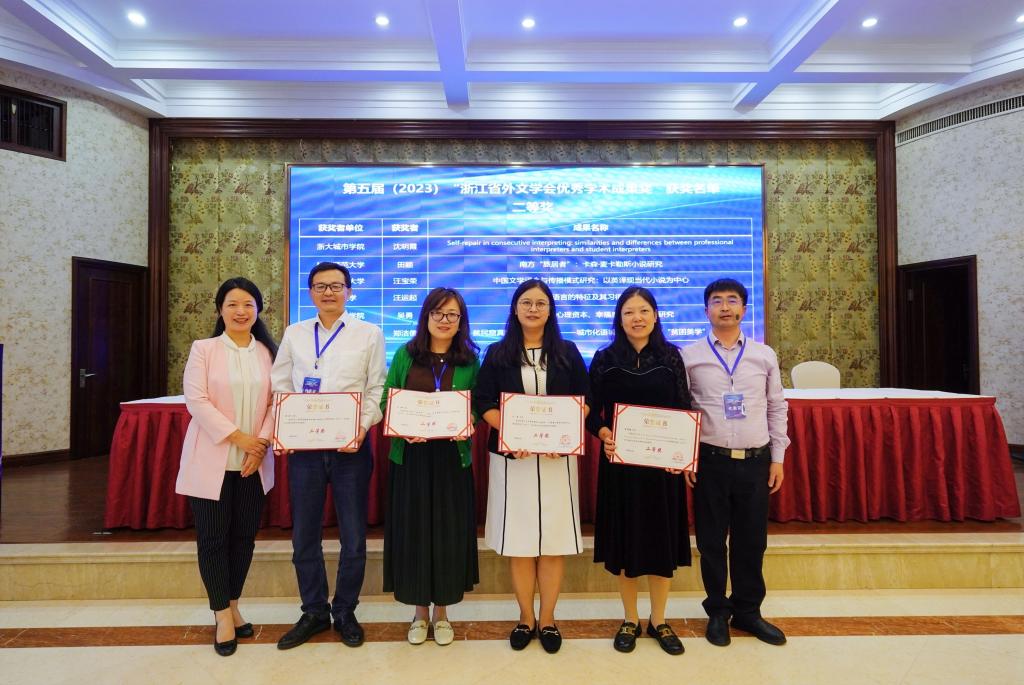本次年会还进行了第十届理事会理事、常务理事和领导班子成员的选举,杭州师范大学mk体育经理周敏教授当选新一届省外文学会会长,公司蔡亮教授当选为学会理事。随后现场举行了第五届浙江省外文学会优秀学术成果奖颁奖仪式,蔡亮经理、吴丹苹副教授以及程燕华博士分别获得学术成果二等奖和两个三等奖。