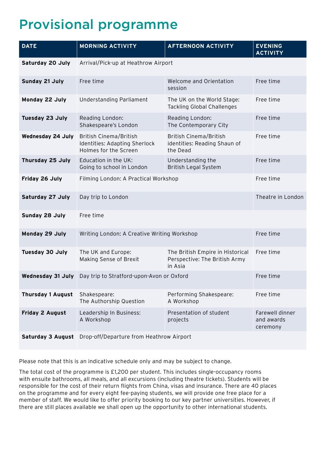 4、项目内容:以莎士比亚为专题主线,深入学习和了解当代英国特别是伦敦地区的文化社会等内容,具体参考(附件1)