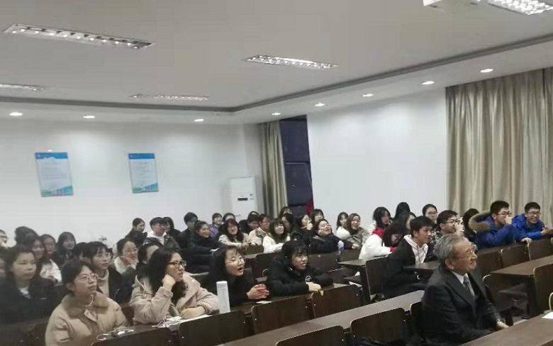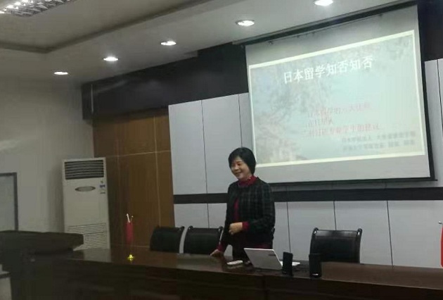 晚上6:00,前原英明理事和钱高莉英董事长在SC405会议室为近50名日语专业的员工做了题为“日本留学知否知否”的讲座,在讲座中,钱高莉英董事长详细介绍了在日本留学和就业的情况,并通过自己几十年的工作经历,用真实的案例和实用的方法,教在场的同学们如何有效快速的通过语言考试,如何申请高水平大学读研深造,获得了在场同学们的热烈掌声。