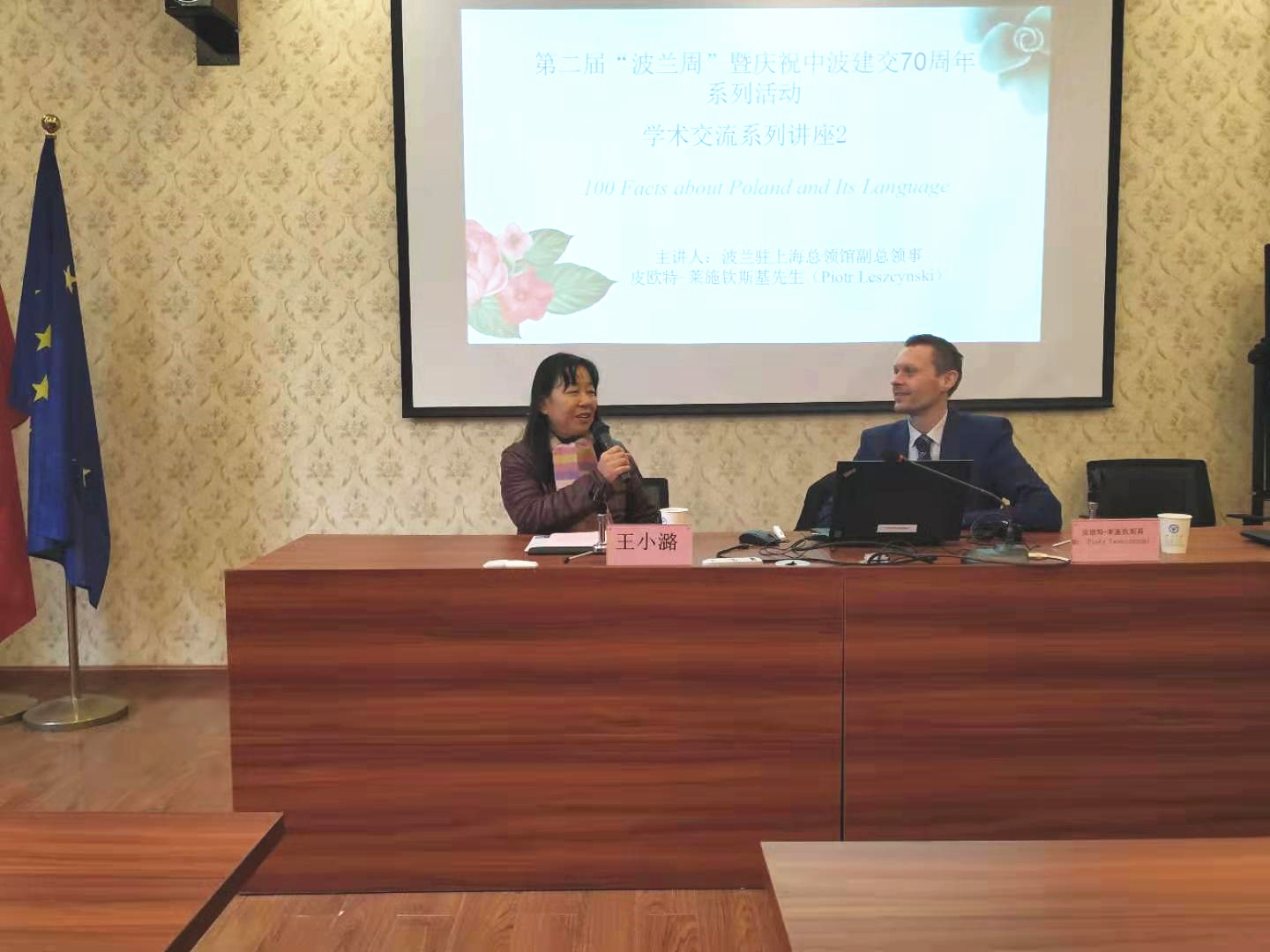 整场讲座,从波兰最古老的居民文化,到最早的书籍文字;从波兰最初的城市建设,到最古老的大学;从最早的国王,到最有趣的波兰人;全面地展示了历史悠久的波兰文化及其对语言的影响。副总领事表示他本人对语言十分感兴趣,对中国汉字文化尤为关注。他非常期待与公司师生的下一次交流,并对公司波兰研究中心第二届“波兰周”的系列活动表示了极大的肯定,希望未来双方有更密切的合作。