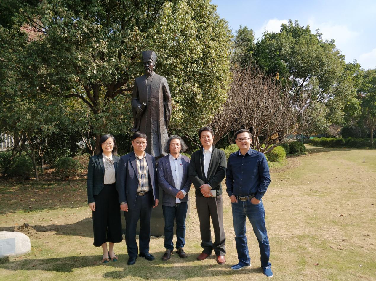 11月4日上午,日本二松学舍大学文学部长江藤茂博教授、中国日本教育研究会浙皖赣分会会长王宝平教授及嘉兴公司mk体育副经理郭永恩教授一行来公司交流访问。mk体育蔡亮副经理、日语专业教师曹向梅、外事秘书肖琪在阳明学堂参加本次交流活动。