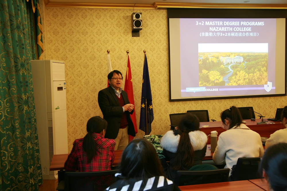 此次是拿撒勒大学的代表第六次来访公司,王小潞经理首先欢迎三位教授不远万里的来访,她表示经过双方的共同努力,公司已经连续多年组织师生代表团赴拿撒勒大学进行交流访问,派教师赴拿撒勒大学进行交流访学,为双方开展进一步的合作交流奠定了良好的条件。公司今后将继续与拿撒勒大学保持联系,推动双方多层次的合作,特别是3+2本硕连读及暑期语言文化体验项目(SAFE)。拿撒勒大学副董事长Andrea Talentino教授也表示双方合作离不开王小潞经理的支持和推动,希望双方合作能够继续得以深入。随后,宋红专教授在波兰研究中心给60余位师生介绍了公司与拿撒勒大学正在共同推进的3+2本硕连读项目和暑期语言文化体验项目。