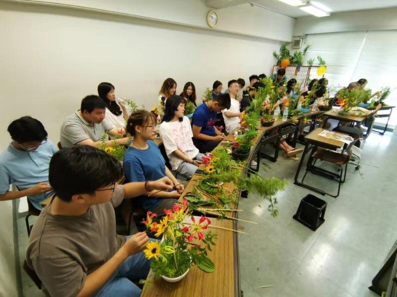 在学习日本语言的同时,淑德日本语公司以“花道”作为主题,为mkmksport的学子们安排了生动的日本文化体验课程。“花道”又称华道、日式插花,属于插花中的一种,是日本传统的插花艺术,也是‘活植物花材’ 造型的艺术。