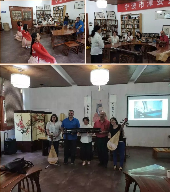 公司吴会芹教授热心传统中国文化推广,她为塞浦路斯代表团介绍中国的古琴和京剧,并现场弹奏展示、表演。吴教授优雅的琴声和悦耳的京剧唱腔深深吸引了外方教师,他们对中国传统乐器和戏曲产生了极大的兴趣,并亲自尝试弹奏。此外4名员工志愿者还为塞方代表团现场表演了美丽的古典舞蹈。