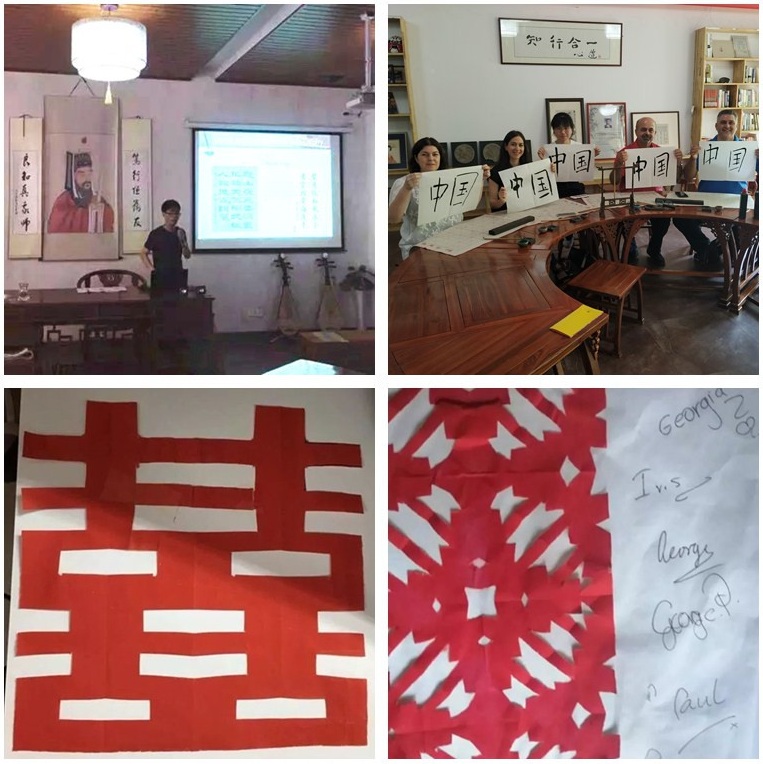 中国传统文化体验由活动项目组的南二丽老师、赵超君老师和郑巍老师精心组织师生志愿者,为塞浦路斯代表团安排了三门各具特色的微型文化课—“书法课”、“剪纸课”和“音乐舞蹈课”。