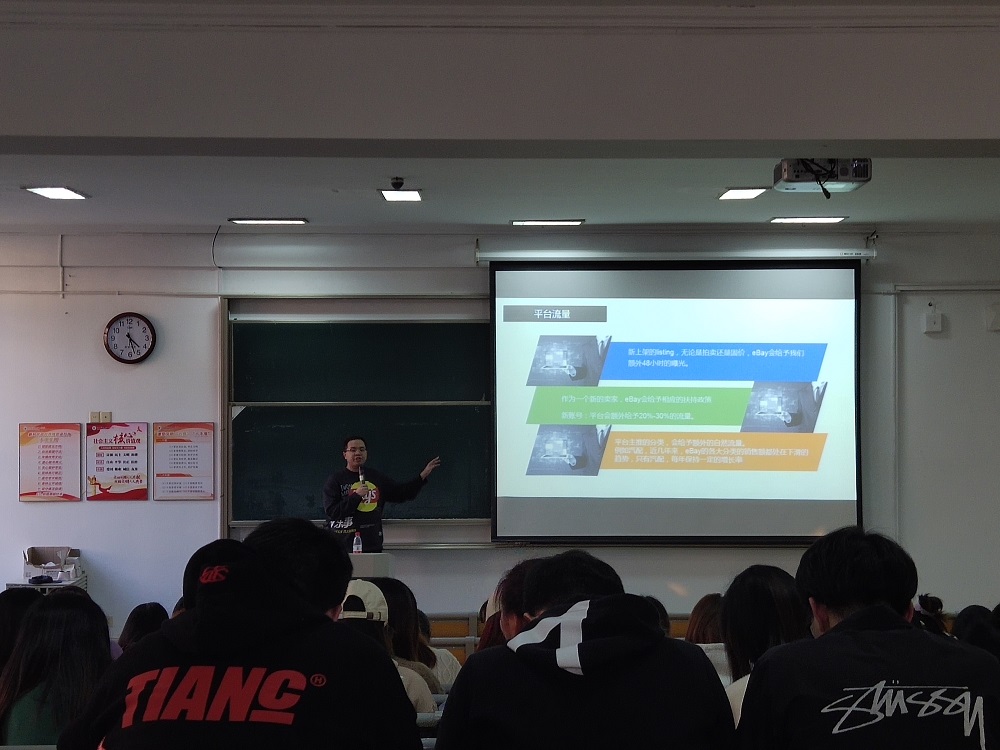 11月10日,mk体育组织的跨境电商企业人员专题系列讲座第三场如期举办,此次讲座邀请国际电商平台eBay的官方培训师杨健镭作主讲人,他拥有丰富的跨境电商从业经验。英语和商务英语专业的员工参加了此次讲座。