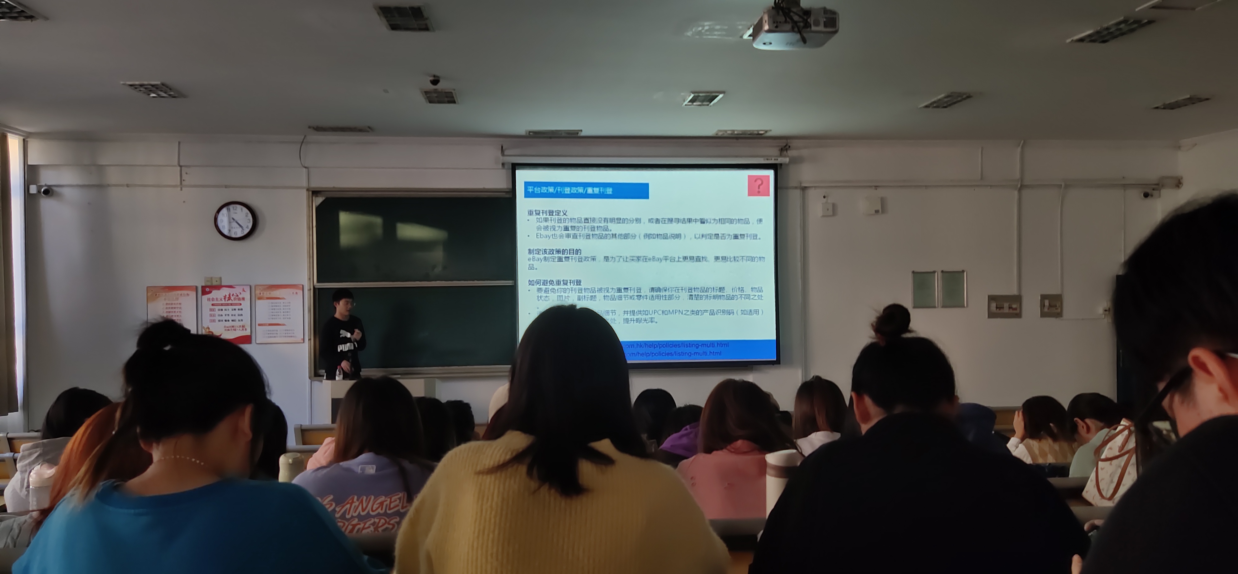 11月3日,mk体育组织的跨境电商企业人员专题系列讲座第二场如期举办,此次讲座邀请国际电商平台eBay的官方培训师朱嘉恩作主讲人,他拥有丰富的跨境电商从业经验。英语和商务英语专业的员工参加了此次讲座。
