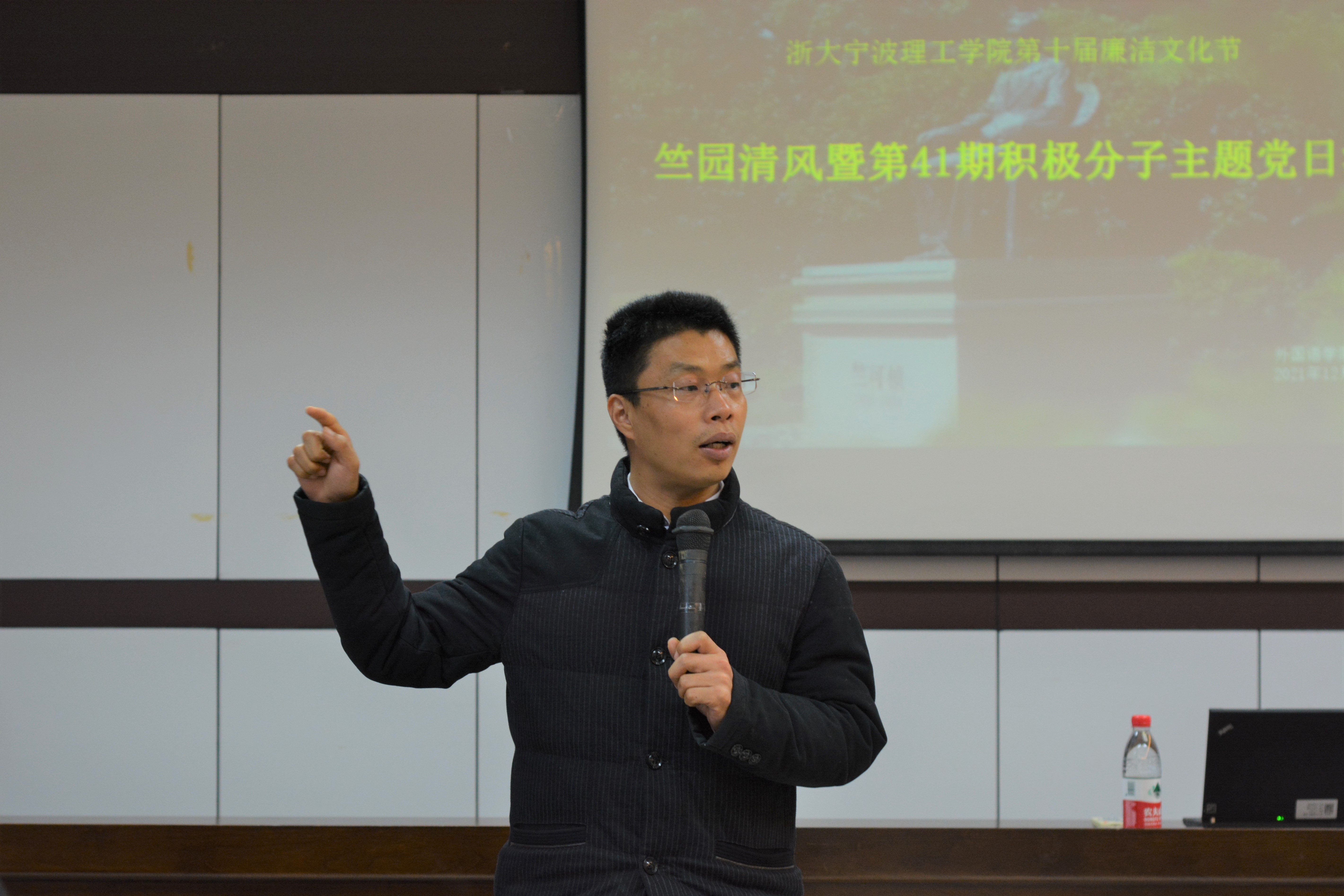 英语204班严瑜婕同学代表积极分子进行了老员工廉洁自律承诺倡议。