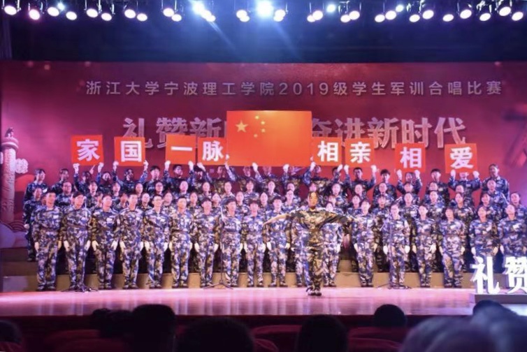 2019年9月2日晚六点半,“礼赞新中国 奋进新时代”庆祝新中国成立70周年军训大合唱比赛如期在可珍讲堂举行。mk体育所在四连选择了《相亲相爱》作为比赛曲目。排练工作在公司辅导员老师和班导师助理的带领下有序进行,四连的学员们则是倾尽全力对待每一次的排练。无论一天的训练后身体有多么疲惫,夜晚的连队教室里总能听到嘹亮的歌声飘扬在宁理的上空。正如歌词中唱的那样“年轻的心跳,同步在骄傲”,四连以热情洋溢的微笑和充满张力的舞姿诠释着“相亲相爱”四字,彰显了当代青年的青春热血与爱国情怀。