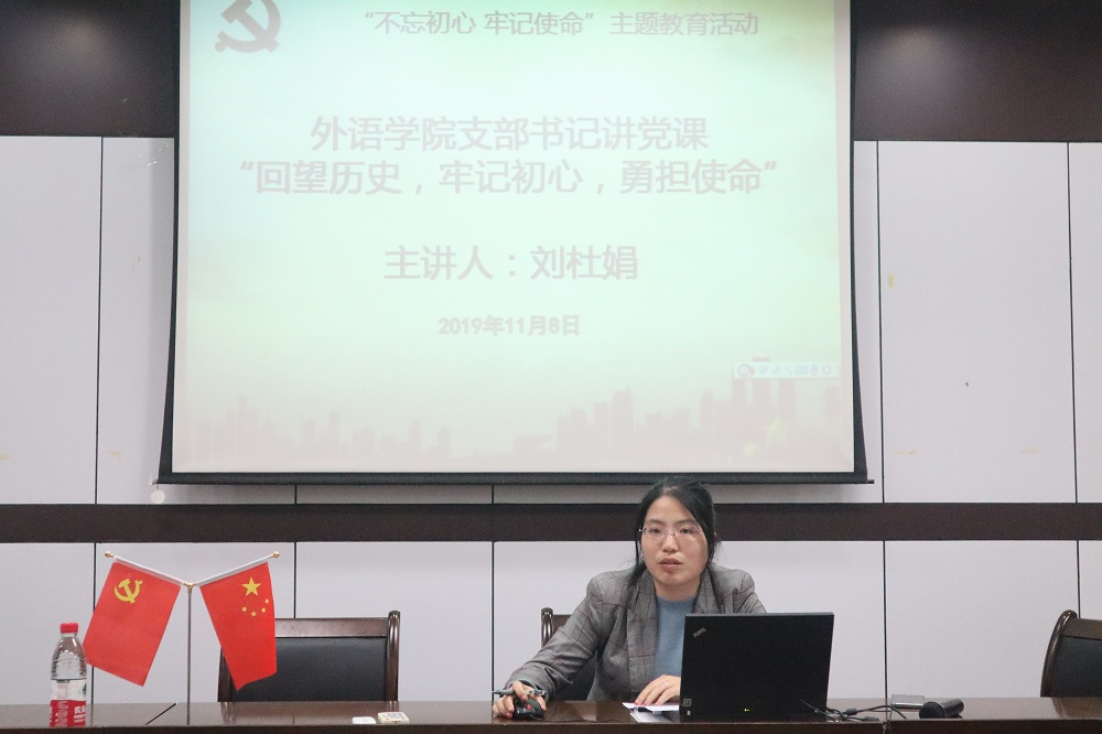 11月8日晚,mk体育“守初心,溯历史”支部书记讲党课活动在SC405教室顺利展开。mk体育员工第一、二支部全体党员参与本次活动,员工第一支部书记刘杜娟老师担任主讲人。