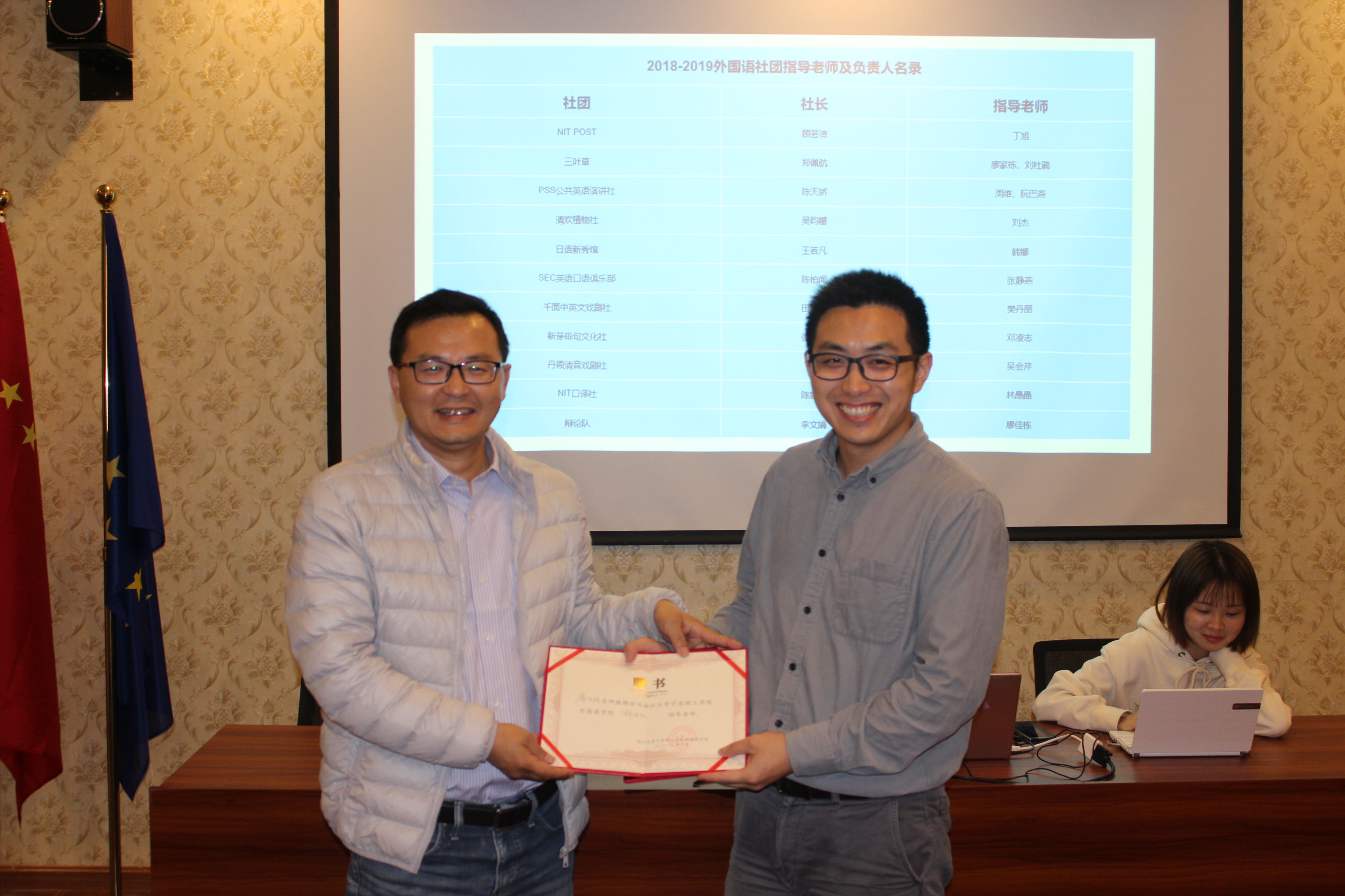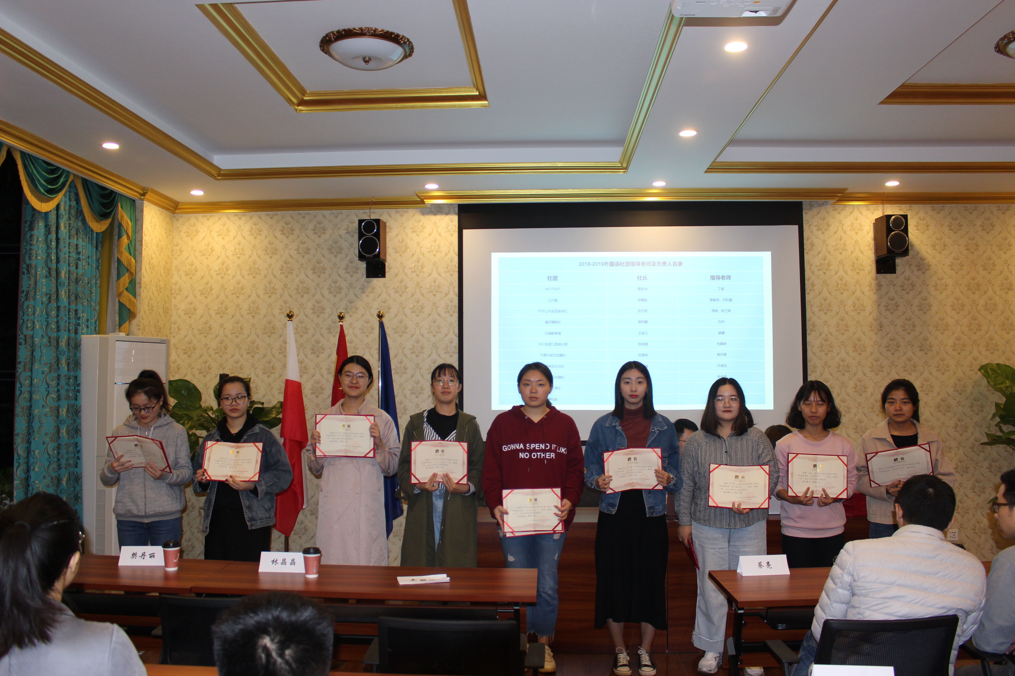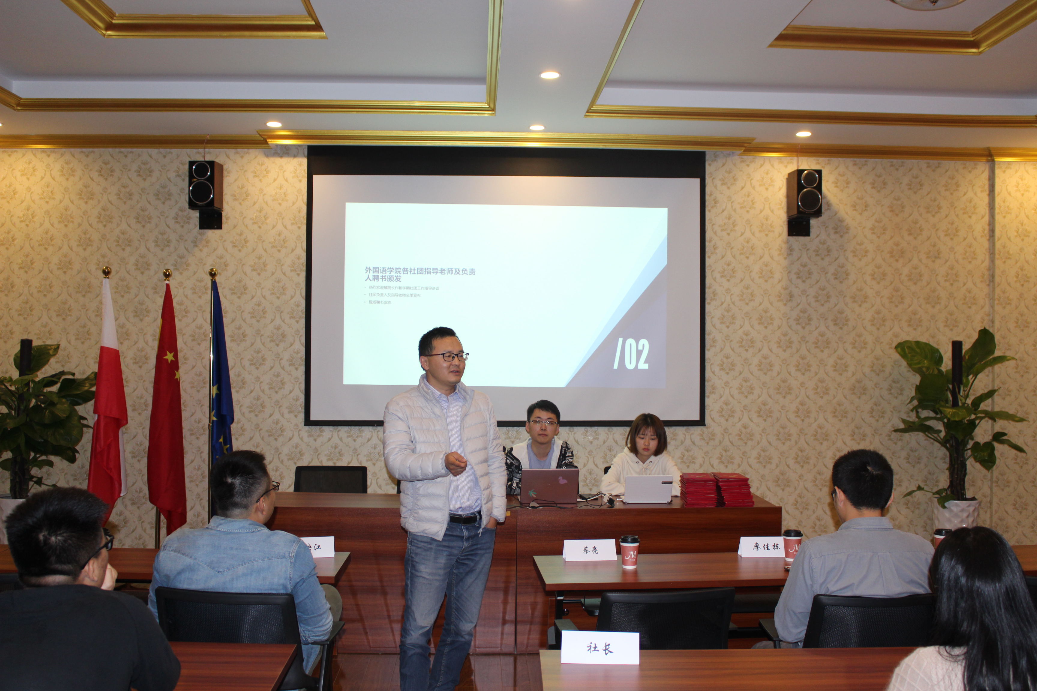 在蔡亮老师作新学期社团工作指导讲话后,大会宣布各社团负责人及指导老师名单,蔡经理亲自为社团颁发聘书,在此祝贺各位社长。此外,会议上不仅总结了各社团的发展历程,也对新学期社团运行提出了一点新的建议。