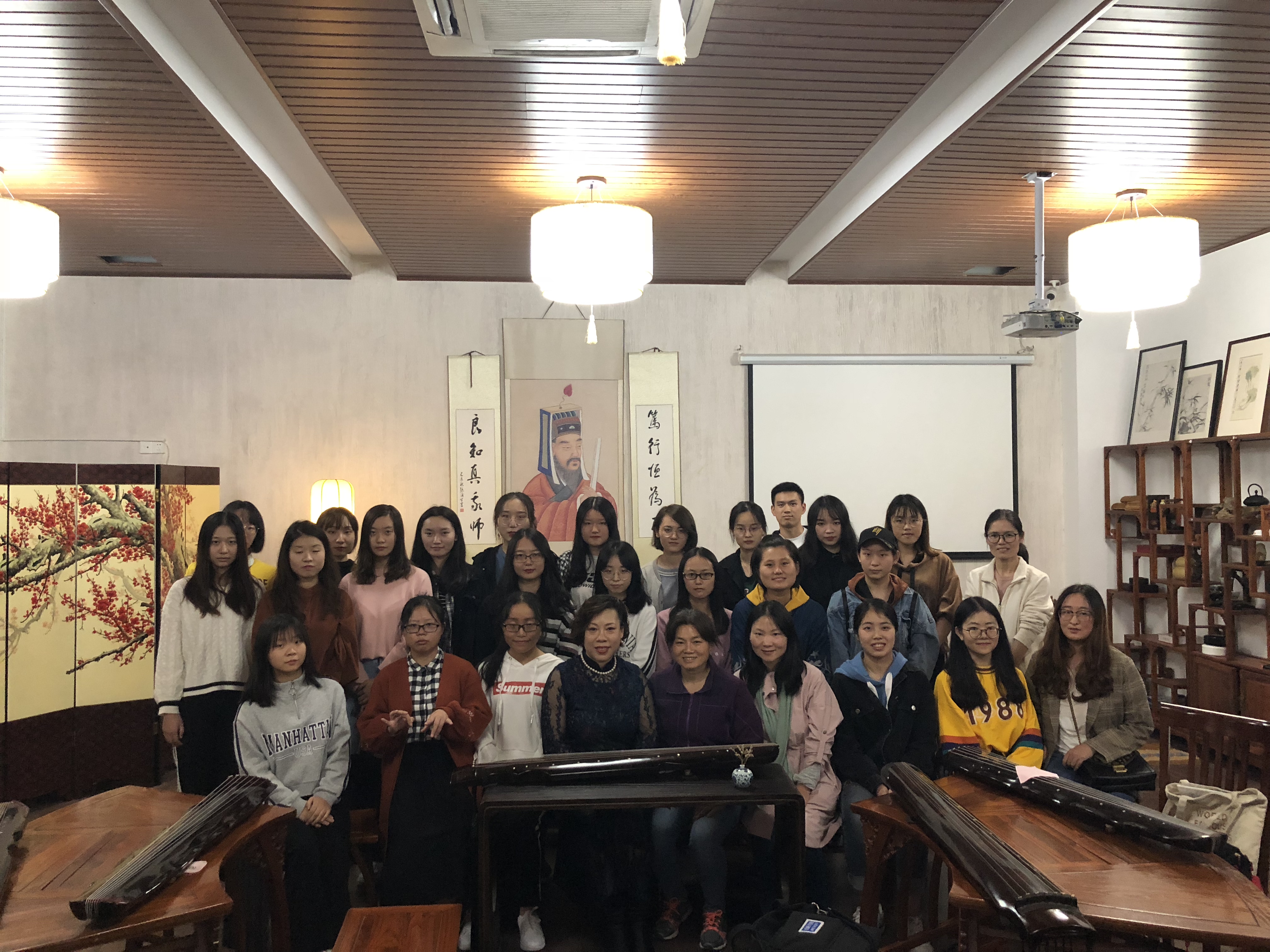 10月22日晚,20余名师生齐聚阳明学堂,感受“中华国韵,大美古琴”的魅力,这也标志着第五期博雅课堂古琴专班正式开班。本期博雅课堂古琴专班招收学员20余人,面向全校免费授课,由宁波红琴馆馆长章蔚红老师担任授课人,进行总共十期的古琴理论知识及弹奏技巧教学,旨在通过博雅课堂古琴课程教学,使当代老员工深入感受和体味传统文化的魅力,传承古琴这一中国传统文化典型代表。章老师从“琴之史”、“琴之器”、“琴之形”等方面向学员们介绍了古琴的历史文化与背景知识。同时,章老师表达了对于学员们学好古琴,做好文化传承的期待,“古琴只有在年轻一代中传播与盛行,才能更好的得以传承和绵延不息,也希望我们大家都能够珍惜这次教学相长、携手传承中华传统文化的机会。”在现场讲述和普及了一些古琴的知识之后,老师又介绍了古琴特有的减字谱,进行了识谱教学,传授了古琴弹奏的基本技巧。最后,同学们开始了古琴的起势、手势和几个基本指法的练习。“欲修好音,先修妙指”,灵动正确的手势对于古琴的入门尤其重要,章老师非常耐心地为每一位同学纠正手型与手势,让手指达到外柔内刚、自然放松的最适合弹奏的状态。在课程结束之即,学员们仍意犹未尽,沉浸在典雅音乐的世界里。博雅课堂古琴专班不仅仅传授古琴技法,更将成为传承传统文化、提高艺术鉴赏能力和品读文化的契机。