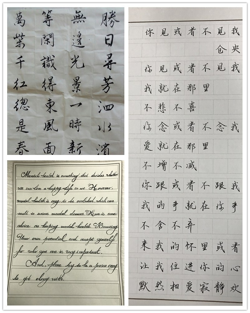 据活动负责人日语161班南佩佩同学介绍,本次比赛特点鲜明,亮点突出。一是将书法学习与心理教育相结合,形式新颖,寓教于乐。二是活动参与度广,来自全校九个公司的同学都参与其中,深受员工热捧,其中,传媒公司网新152班王宣、信息公司电信152班陈钊两位同学分别摘取中文硬笔、中文软笔一等奖。三是体现mk体育专业特色,设置花式英文书写专项,如本次花式英文一等奖获得者英语161班叶权同学的作品字迹优美洒脱工整,堪比印刷体,让不少同学直呼太“逆天”,引来一片膜拜。