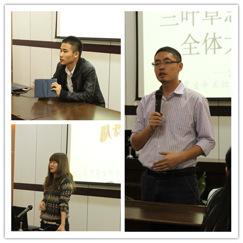 随后,队长龚森超做了上学年的工作总结,副队长郑媛发言鼓励新成员以更饱满的热情参与进来。在郑明同学幽默风趣的主持下,大家欣赏了一些活动照片,从而对三叶草这个项目有了更深的了解。在热情高涨的小游戏调节气氛以后,各部门部长一一发表讲话,或给在座的同学一些建议,或与大家分享工作经验。大会至此也告一段落。