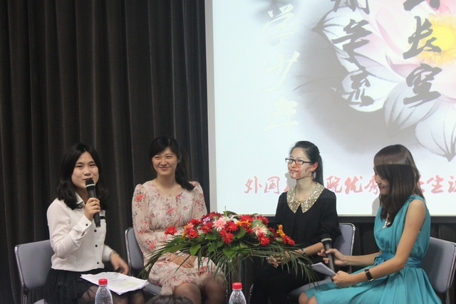 在第一个篇章里,夏洁、朱颖和关尔佳三位同学分别向大家介绍了如何规划大学专业学习的体会,分享了参加考研和社会实践活动的经历和感受。夏洁同学深情地回忆了自己大学四年的学习和社会工作经历,认为执著和信心是成功的保证;朱颖则从自我定位和兴趣选择上给大家很大启发;关尔佳从参加“公益汉语课堂”实践活动谈起,希望在场同学们要积极参与公司社会实践活动,作为外语专业的员工,要勇于并敢于与外国人交流,以提高自己的外语运用能力。