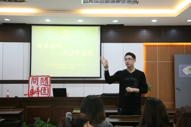 4月24日下午,外国语公司党总支“随园问辨”员工党员学习论坛在SC405举行。本期论坛的主题是“谈谈我们的价值观”。