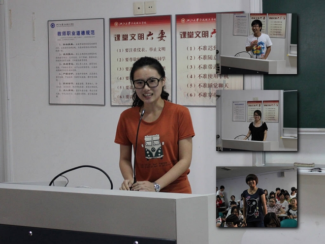 其后,陈庆与黄威等同学也热情细心地向新生讲解了许多对于外语专业员工来讲行之有效的方法和窍门 ,他们都共同谈到了课外知识的重要性,认为学习不能仅限于课本知识,一定要有宽广的视野,要广泛涉猎各学科的知识,增强自己的知识厚度。