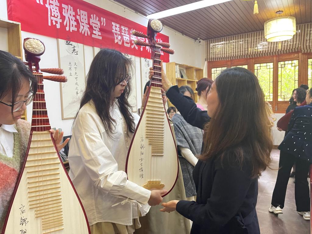 为更好地帮助基地开展琵琶艺术教学指导,应锦阳个人出资,为阳明学堂捐赠了琵琶十二把,用于公司博雅课堂开展琵琶美学研修等课程教学,在校园美育和文化传承中发挥积极作用。应老师说道:琵琶研修课程与阳明学堂践行的知行合一、致良知、体验美学等教学理念高度契合,希望同学们与音乐同伴,学好手中的琵琶,立足传播中华文化使命,自觉成为中国优秀文化的传承人、践行者。