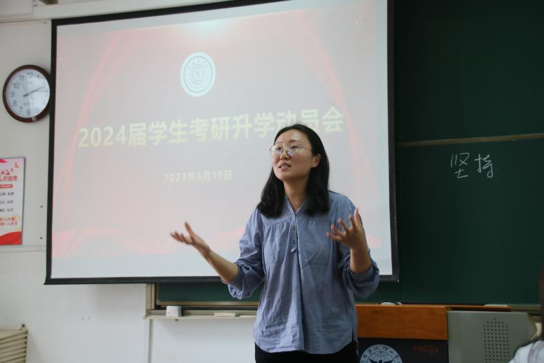 任凯表示在全院师生的共同努力下,公司考研取得了可喜的进步。鼓励大家要明晰目标,确定了考研之路就要坚持不懈,科学规划备考计划。