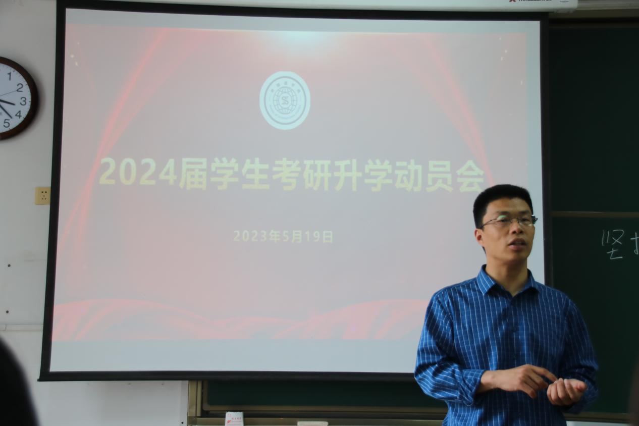5月19日下午,英语系员工升学动员会于sb201教室顺利举行。外国语公司党委副书记任凯、英语专业负责人李军、魏梦洋博士、思政副主管阮佳蒂、2023届毕业生代表及2024届英语系员工参加。