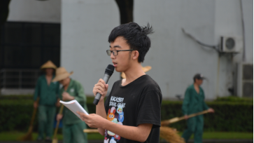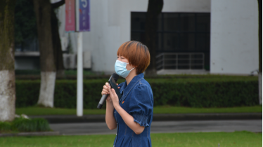 首先进行的是仪式第一项,升国旗奏唱国歌,全体师生行注目礼。下一环节,员工代表英语222班侯嘉佳和日语222班黄祎楠依次发言,侯嘉佳同学强调学习是件持续和永恒的事,也使得学风建设成为公司永恒主题,足见学风地重要性,在期末考试阶段希望同学们从学风出发,从自己做起,诚信考试。
