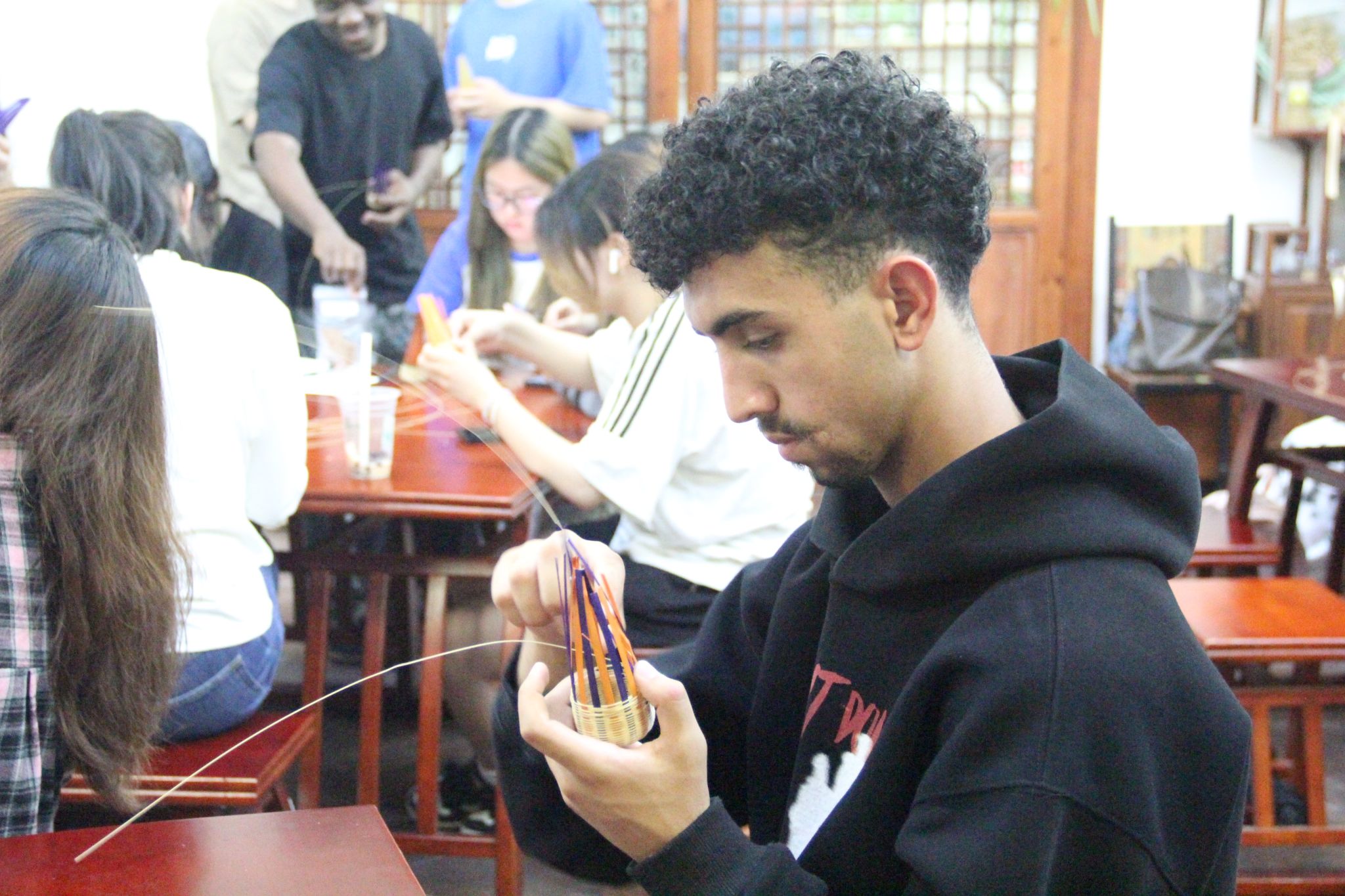 竹韵悠悠,匠心流转。每一件竹编制品,都凝聚着手艺人的智慧与对生活的热爱,或质朴实用,承载着端午的烟火气息;或精美绝伦,展现着中华文化的博大精深。此次“博雅课堂”端午竹编体验活动,不仅让中外学子亲身感受到了非遗技艺的精妙,增进了对端午节文化内涵的理解,更搭建了一座以竹为媒的文化交流之桥。从古老的工坊走进现代校园,这门指尖上的非遗技艺,正通过中外青年的共同参与,焕发出新的生机,成为流动在校园里、连接着世界的活态文化符号。