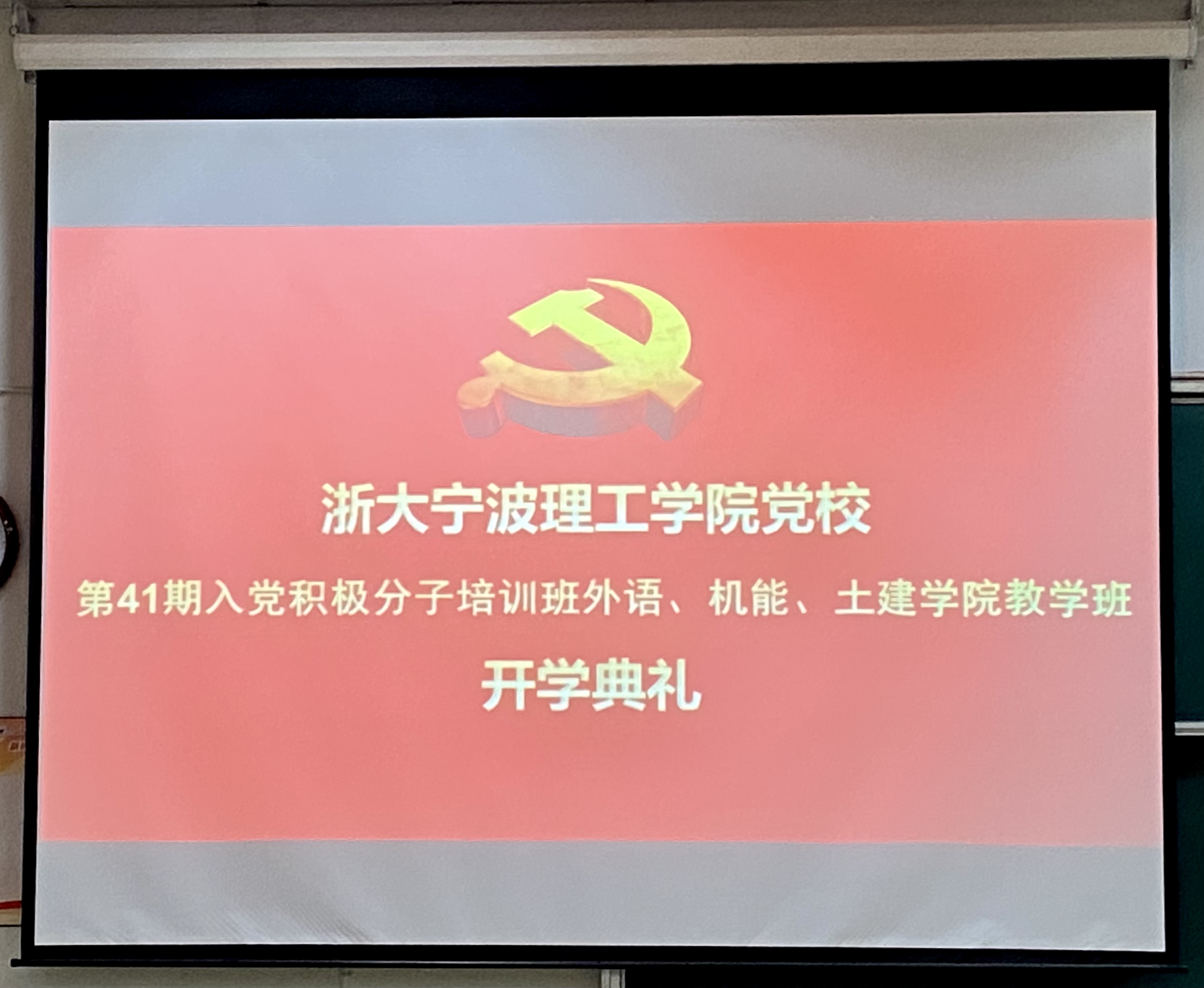 11月9日晚17:30,浙大宁波理工公司党校第41期入党积极分子培训班外语公司、机能公司和土建公司党委联合教学小班开学典礼在SB104如期举行。外语公司党委副书记、纪委书记任凯,机能公司党委副书记、纪委书记王晶,外语公司组织委员、思政主管芦美丽,机能公司辅导员曹燕,土建公司思政副主管周星出席了活动。活动由芦美丽老师主持。