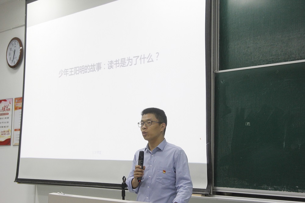 讲座伊始,任凯引入了王阳明和青年习近平的故事,讲到青年习近平在面临人生路的时候选择把为人民服务作为自己一生的信念。他指出青年在振兴中华的过程中起了重大作用,希望同学们能够早日树立崇高理想信念,把握人生道路,将来能够服务社会,做社会主义合格建设者和接班人。同时,任凯向同学们介绍了入党的具体流程以及入党的基本条件和要求。