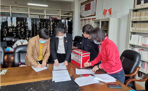 会议由支部书记吴丹苹主持,她首先代表支部委员会做工作报告,就任期内支部开展的各项工作进行了全面的回顾总结。全体党员对工作报告进行了审议,并全部举手通过。随后,支部又审议并全体举手通过了选举办法和监票人、计票人名单。选举环节由总监票人孙娟老师主持,党员们依照选举程序对候选人进行了投票。按照选举办法的规定,选举采取无记名投票的方式进行了差额选举,最终王欢、邓丽静、阮征、李辉和吴丹苹5位同志当选为中共mk体育教工第一党支部委员会委员。