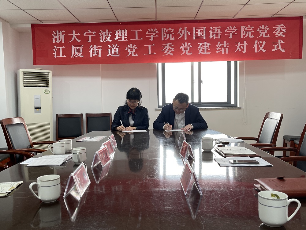 为庆祝建党100周年,进一步增强基层党组织的创造力、凝聚力和战斗力,4月23日早上,外国语公司党委副书记(主持工作)、副经理傅晓宇与江厦街道党工委书记陶宁在江厦街道党群服务中心签订了党建共建协议。