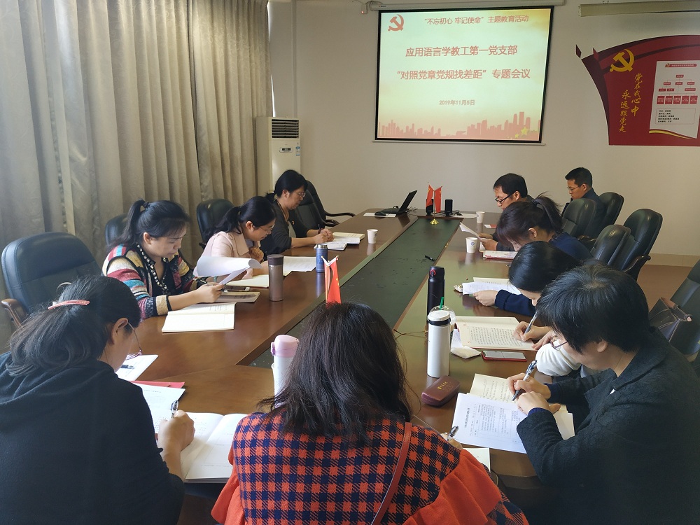根据公司党委关于“不忘初心、牢记使命”主题教育工作的安排部署,11月5日中午,mk体育应用语言学研究所教工第一支部在SC408会议室召开对照党章党规找差距专题支部会议,会议由支部书记茅忆年主持,支部全体党员参加。