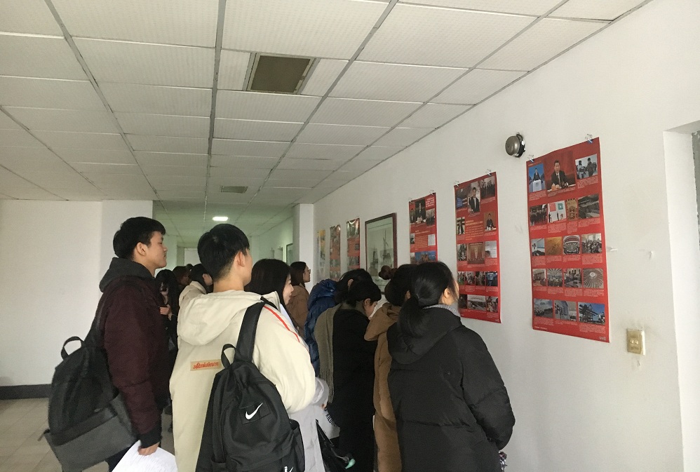 会议结束后,全体党员参观学习了张贴在SC406教室外面的改革开放40周年宣传图。