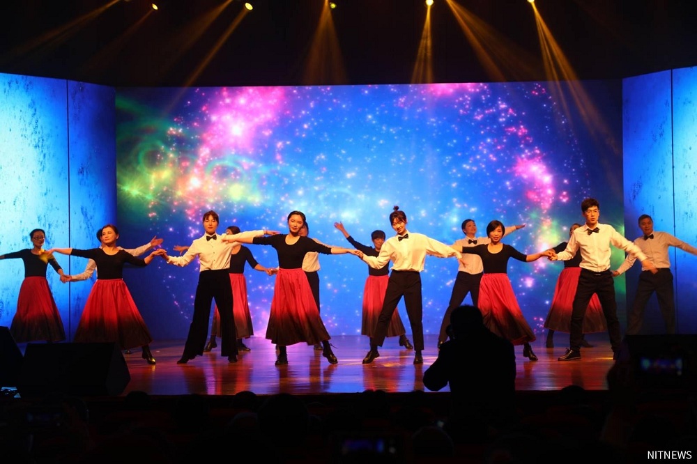 外语分工会16名教师及部分员工参加了《真爱永恒》、《芳华》、《枉凝梅¬报花名》等多个节目的表演。近一个月来,师生们利用业余课余时间积极排练准备,相互加油鼓劲。在晚会舞台上,师生们阳光又活泼,温柔又坚定,尽展外语人和谐奋进的风采。精彩的表演赢得在场观众热烈掌声。