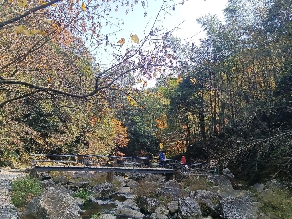 老师们先是游览了丹山赤水景区。景区内群峰斗妍,古树参天,竹木蔽日,溪水潺潺,处处皆是美景如画。景区所在的柿林村,石墙青瓦,幽雅宁静,黄叶铺道,美不胜收。民俗文化与山水美景,让老师们身心愉悦之际,更加贴近自然,纷纷拍照留念。