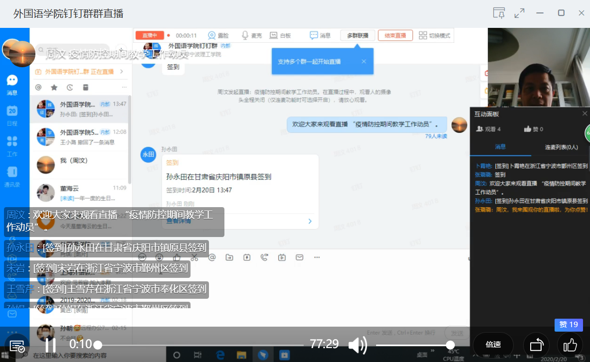 2月20日下午2点,mk体育使用钉钉召开全体教师视频会议,布置开学相关工作安排,公司班子成员及全体教职工参加了此次会议。会议由公司副经理周汶老师主持。