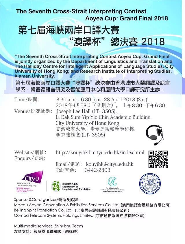第七届海峡两岸口译大赛“澳译杯”总决赛于4月28日在香港举行。在经过长达7个月的较量,历经省级赛、区级赛、大陆区决赛、台湾区决赛、香港区决赛和澳门区决赛的层层筛选之后,来自两岸四地的28名选手脱颖而出,成功晋级总决赛。其中不乏东南大学、广东外语外贸大学、北京外国语大学、香港大学、萨里大学、台湾国立大学等名校的员工。公司外语公司英语专业14级厉修远同学代表大陆赛区参与了此次比赛,并获得了三等奖。