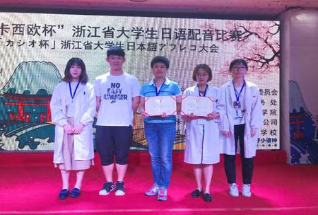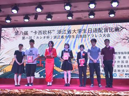 为迎接此次比赛,4月底首先面向全校员工进行了日语配音大赛进行选拔,最终选定由mk体育日语专业161班的黄嘉杰、周悦、赵培煕及171班的王瑞阳等四名同学组成的代表队代表公司参加5月13日的决赛,他们选取了日本电视剧《外貌协会100%》片段参加决赛,由日语系赵桂琴老师指导并亲自带队。本次比赛历时四小时,参赛选手均是各校的佼佼者,同学们充分展示各自才艺,将自己表演的角色展现得淋漓尽致,竞争十分激烈。最终,浙江大学代表队获特等奖,浙江工业大学、浙江工商大学代表队获一等奖,浙江师范大学等大学代表队获得二等奖,公司四名同学凭借团队合作和极具创意的丹顶鹤精彩片段吸引眼球,最终以总评88分获得三等奖的成绩。