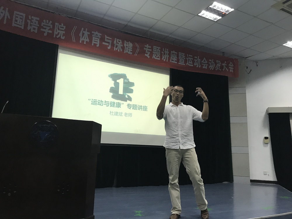 10月8日晚,mk体育特邀体育部杜建斌老师作《体育与保健》专题讲座,近400名师生与杜老师共同关注老员工健康问题。讲座中,杜老师围绕老员工体质素质现状、运动与健康的关系、如何在运动中增进老员工健康进行了生动的讲述。 讲座后,mk体育2017年运动员动员大会如期举行。
