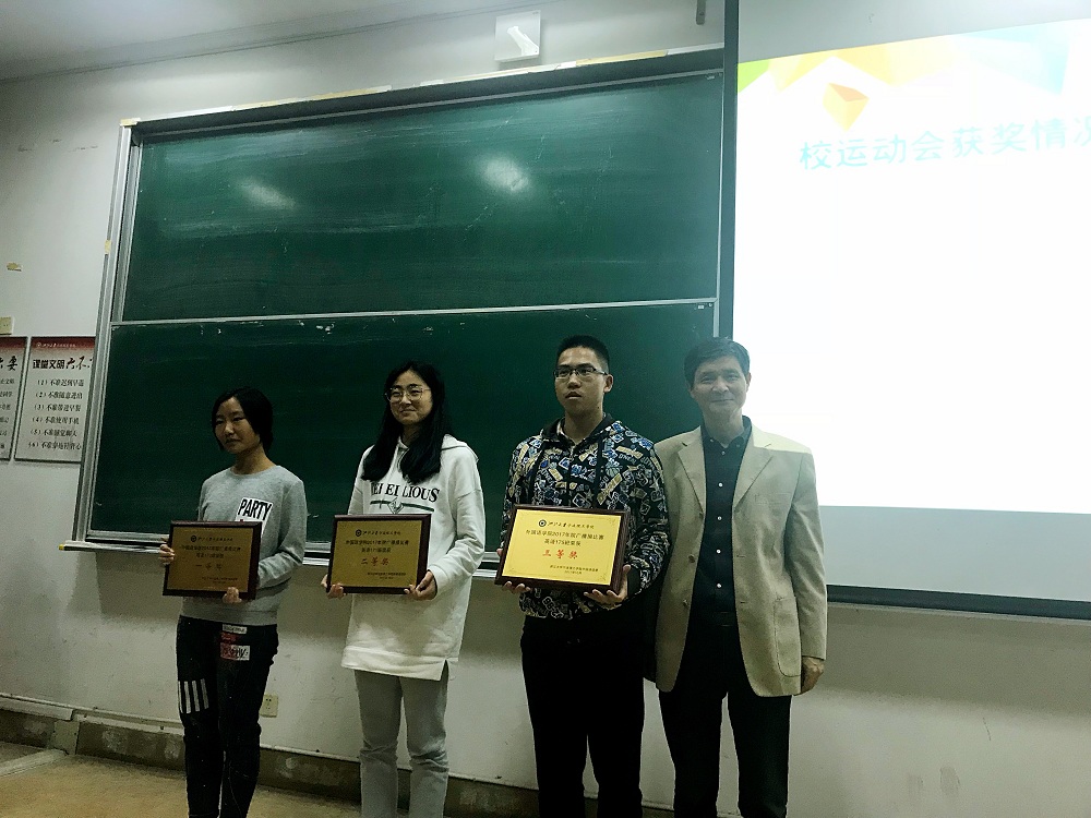 会议表彰了在运动会上表现突出的运动员、指导教师、先进工作者和优秀班集体,英语172班、英语171班、英语175班分获公司广播操比赛一、二、三等奖,史克文等54名同学被评为广播操比赛优秀个人,周哲丞等9名同学被评为优秀运动员,李梦倩等31名同学被评为运动会优秀工作者,杜建斌等2位老师被评为运动会优秀指导老师。党总支书记谌老师老师为获奖的优秀集体和个人颁发了奖状。