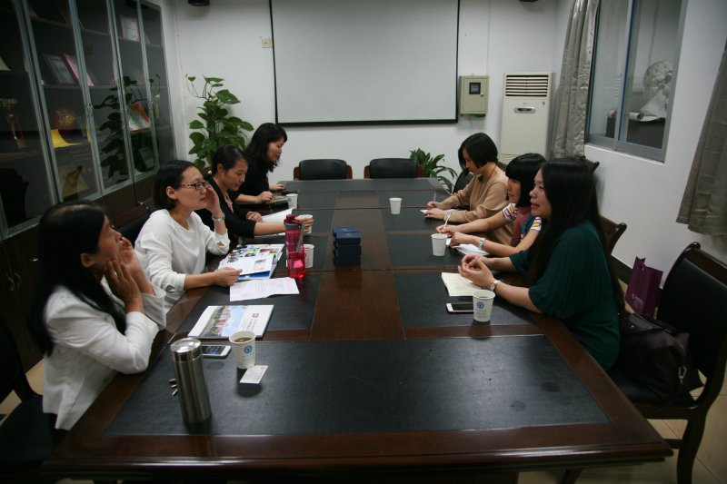 老师们对刘主任一行来访表示欢迎,并详细介绍了公司大学英语人才培养、团队队伍建设、团队建设和教学改革等方面的基本情况。刘主任也就她们公司的办学特色和所遇到的困惑表达了对大学英语教学未来发展的看法。双方就大学英语分级教学、慕课开发、拓展课程及选修课的开展等问题展开了激烈的讨论和充分的交流,同时,刘主任一行也对公司的外语自主学习平台表现了浓厚的兴趣。座谈会气氛热烈而融洽,双方在讨论中互相学习、互相借鉴,达到了交流的目的。