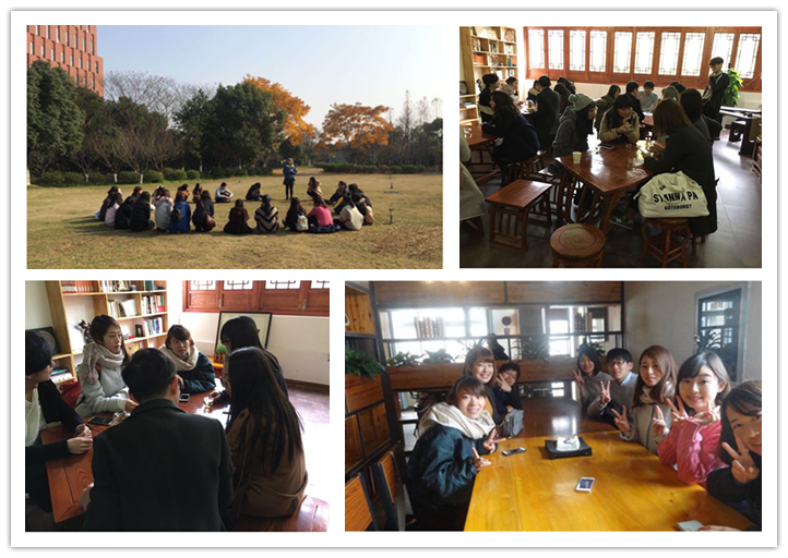 下午1点半,在阳明学堂展开了热烈的交流茶话会,到场的还有许多非日语专业的同学们,大家分坐在桌旁,一边品着茶,关于在校学习、生活、中日文化等等各自想了解的主题互相讨论。虽然语言不能畅通,但心灵上的交流跨越了语言的障碍,一边解释一边举手画脚,别有一番趣味。交流中,阪大的两位男同学即兴合唱了一段歌曲,气氛十分融洽。