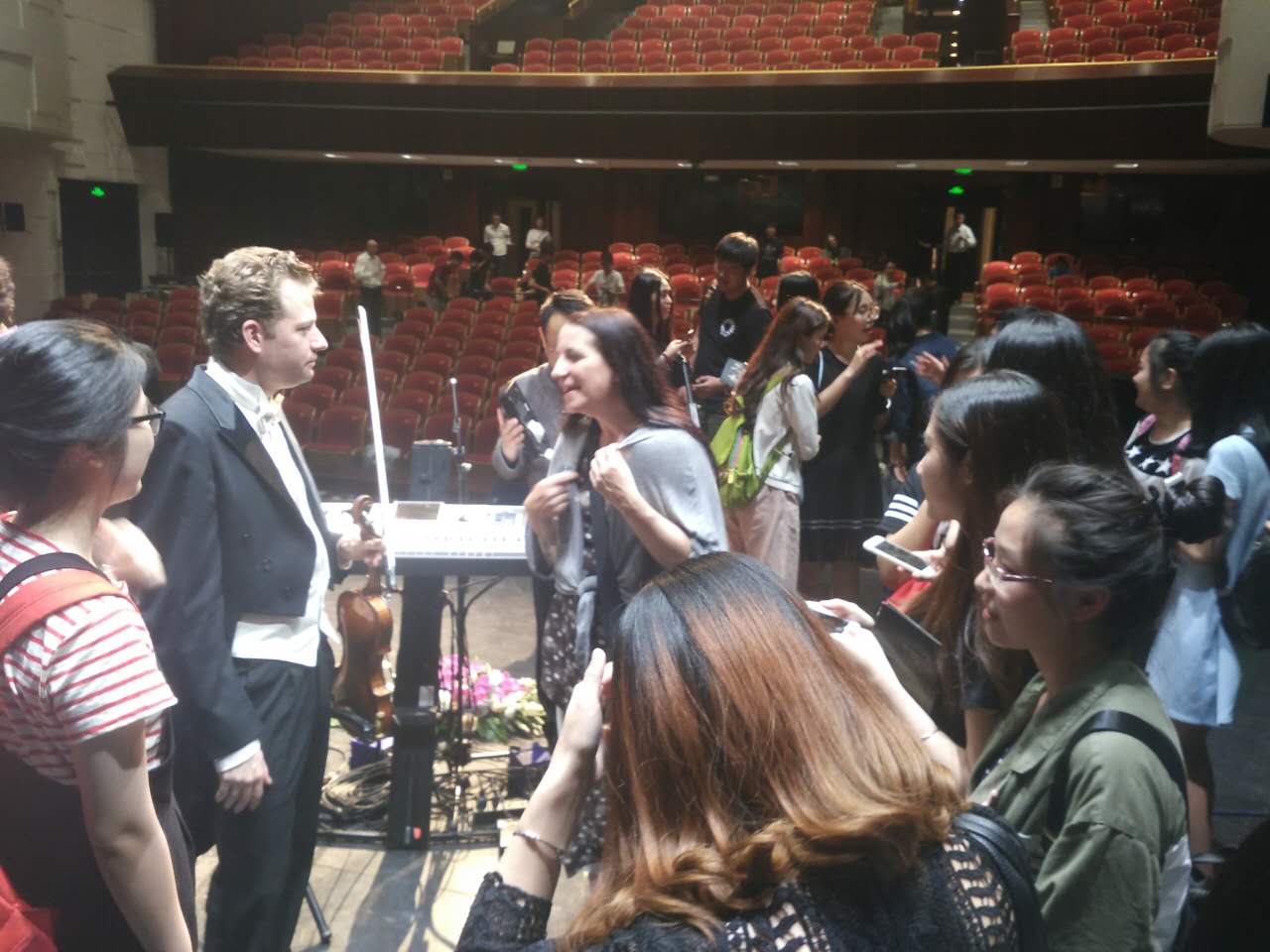 5月30日晚,公司中美英语和中美国贸班同学在美国印第安纳波利斯大学Karen教授、George教授带领下赴上海师范大学参加由美国印第安纳波利斯大学和上海师范大学联合举办的“当东方遇见西方”音乐会,感受东西方音乐文化差异带来的美。外语公司肖琪和经贸公司吴新林老师作为带队老师也随团聆听了音乐会演出。 音乐会上,公司员工聆听了美国印第安纳波利斯大学女高音歌唱家Kathleen Hacker、小提琴演奏家Austin Hartman,管风琴演奏家Marko Petricici和上海师范大学电子音乐作家申林、吴歌青年歌唱家赵娴、青年钢琴演奏家翁怡等音乐家带来的系列作品。当东方流传千年的非遗音乐印象山歌、吴语之语等系列经典名作遇见西方年轻的幻听音乐Fantasie and Fugue in G Minor. BWV542、 LeBonheur est chonse Legere,当西方传统的古典音乐Zigeunerweisen. Op. 20遇见东方唯美的民间小调茉莉花。这一次次地东方与西方音乐的碰撞,让同学们享受了一次意想不到的视觉和听觉盛宴。 此外,同学们还在老师们的带领下,参观了上海博物馆。不仅感受了中国古代和近代文明的历史遗迹,还领略了欧洲古代文明的。之后他们还参观了伟大的爱国主义、民主主义、国际主义和共产主义战士,举世闻名的二十世纪的伟大女性宋庆龄故居,领略了这位伟大女性英勇奋斗的一生。