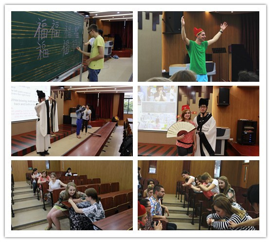 中国文化课程的第四天为教育文化主题,赶巧的是,超强威力台风“灿鸿”正逼近宁波,此时的理工校园大风已起,雨势明显增大,而这恶劣的天气却没能阻断波兰员工们追寻中国文化的脚步,带队老师和同学们准时来到了教室,期待感受另一场中国文化的盛宴。 本次课程是由mk体育程燕华老师向来自波兰的同学们展示了中国教育文化的全貌。她以文字的解说,配以贴切的图片及仿真教学道具的辅助,带领大家穿越至两千五百多年前的孔夫子时期,“私塾”,“作揖”,“科举”及“八股文”这些中国传统教育特有的关键词很快就吸引了波兰员工的眼球。课间,这些金发碧眼的老员工们就迫不及待地戴上了状元帽,着孔子服,摆作揖的姿势,“咔擦”,“咔擦”,留下中国文化体验课的纪念后美滋滋地回到座位。现代教育的介绍让波兰员工产生了共鸣,表示波兰也有类似的教育体系和考试选拔制度,中国的“高考”吸进了不少员工加入到提问互动环节,大部分员工诧异于中国式教育的“虎妈狼爸”,个别员工则希望体验中国“棍棒底下出孝子”的教育理念。 互动游戏“论语传话”将课堂氛围推向了高潮,程老师将全体参与者分成六组,让员工志愿者将孔夫子的教育名言,如“学而不思则罔”,“三人行,可以为师矣”等,小声念给每组的第一位员工,由他们分别负责传给自己的组员,最后一名员工将大声将他所听到的告诉全班同学。明白了游戏规则后,波兰员工和老师表现了极大的参与热情,迅速坐成六列纵队,一些还士气高涨地喊着刚学的中文“状元”,“状元”。但对于第一次来中国只会说“你好”,“谢谢”,“再见”的波兰员工来说,传诵论语,并非易事,他们听到论语时近乎抓狂的表情,极力想要传达的认真样,令人忍俊不禁。波兰版的论语自然惨不忍听,面目全非,却有个别组表现超凡,能大致说出“工欲善其事,必先利其器”的前半句,令在场的同学和老师甚是佩服。最后,程老师宣布了表现较好的前三组,给他们送上了论语名句中英版的中国风书签,表现欠佳的三组则应起立向胜利者作揖表示佩服。胜利者纷纷抢带状元帽,高举战利品,各种自拍和互拍;作揖者牢记了动作要领,像模像样拱手作揖。在一片喜悦,欢愉和掌声中,本次文化交流课顺利结束。 吟着孔夫子的名言,夹着中国风的论语书签,波兰员工可能似懂非懂,但我们相信这场文化体验课能点燃他们兴趣的火花,逐渐感悟中国文化的精髓。我们也深信,阳明学堂的进一步发展壮大会吸引更多的教师和员工志愿者来体验这个美好的文化交流历程。