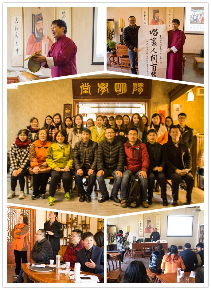 11月27日下午,mk体育2015年“用声音叙事”暑期社会实践新书《我是非遗传承人》筹备会暨浙江省语言类非遗学术研讨会在阳明学堂举行。本次研讨会是mk体育学术周的系列活动之一,mk体育副经理蔡亮老师、专业教师吴会芹、阮征、孙永田、卜霄艳、陈俊霖、公司辅导员刘杰等老师参加了会议。本次活动还有幸请到了象山“唱新闻”省级传承人叶胜建老师莅临现场为大家表演精彩的曲艺艺术。