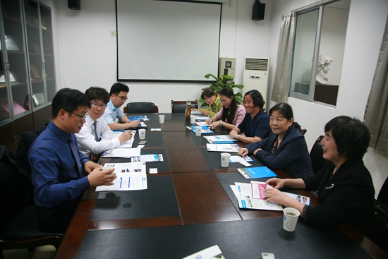10月23日下午,韩国外国语大学事业支援处处长金宗奭、事业支援处主任林星建、韩国语文化教育公司主任林亨栽、韩国外国语大学孔子公司经理苗春梅等一行五人来公司进行友好交流。公司经理王小潞教授、吴会芹教授、林晶晶等人在SC403会议室接待了来访的客人。